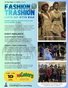 6 PM – 7 PM: The “witch-walk” begins as our witchy models strut the runway in their designer threads made from scraps. There will be a panel of judges PLUS live audience voting! The top 3 designs (and the audience winner) will receive in no particular order: cash prizes, gift cards, tickets to VAFW, as well as ALL designs will walk the runway in October at VA Fashion Week. The Grand Prize winner will have the opportunity to create a CAPSULE COLLECTION at VA Fashion Week!